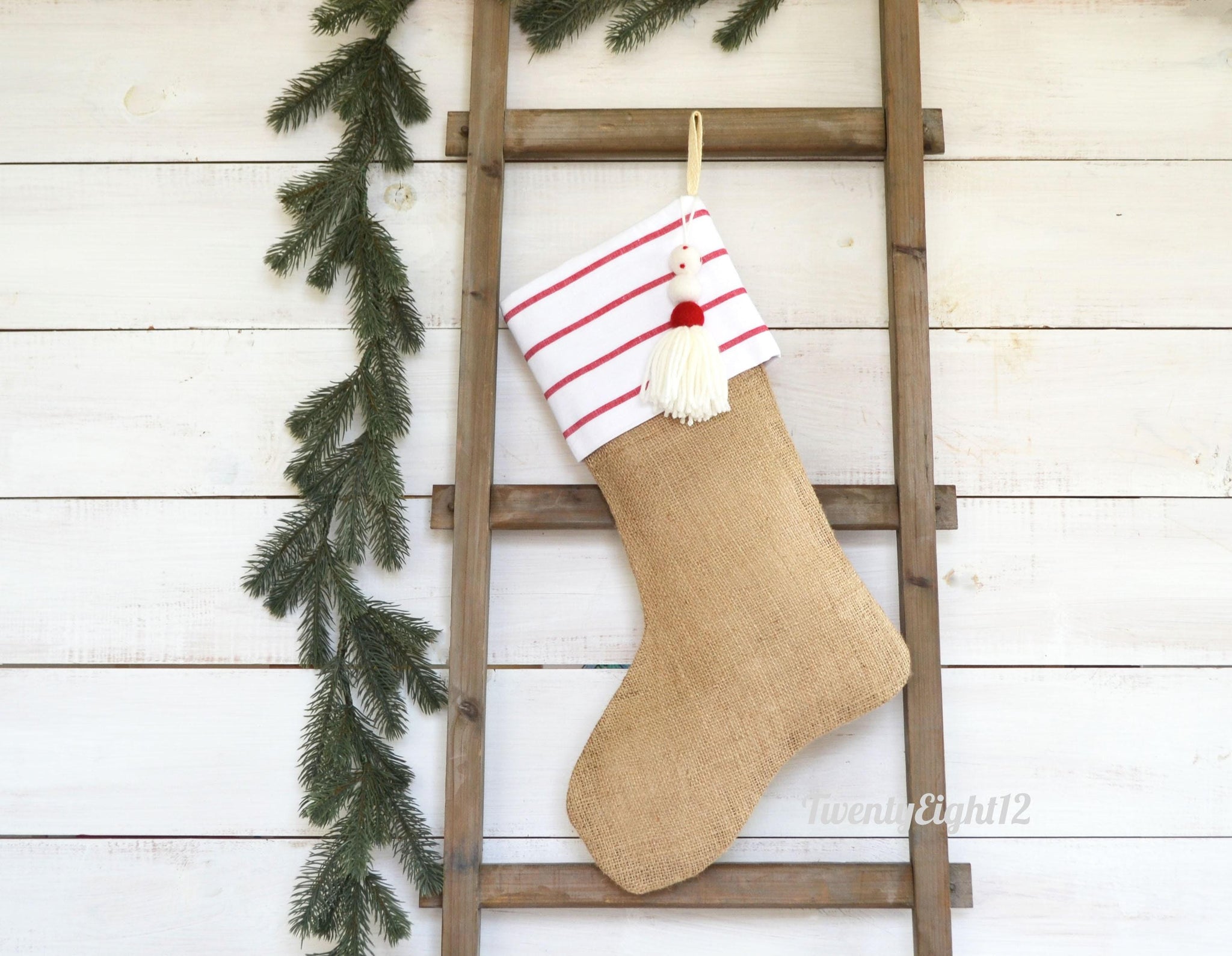 Our timeless Burlap Christmas Stockings create a warm a cozy keepsake for the holiday season. Made of high quality materials and generously sized for stuffing with gifts & treats. Personalize with a stocking embellishment to create that special made-for-you look.