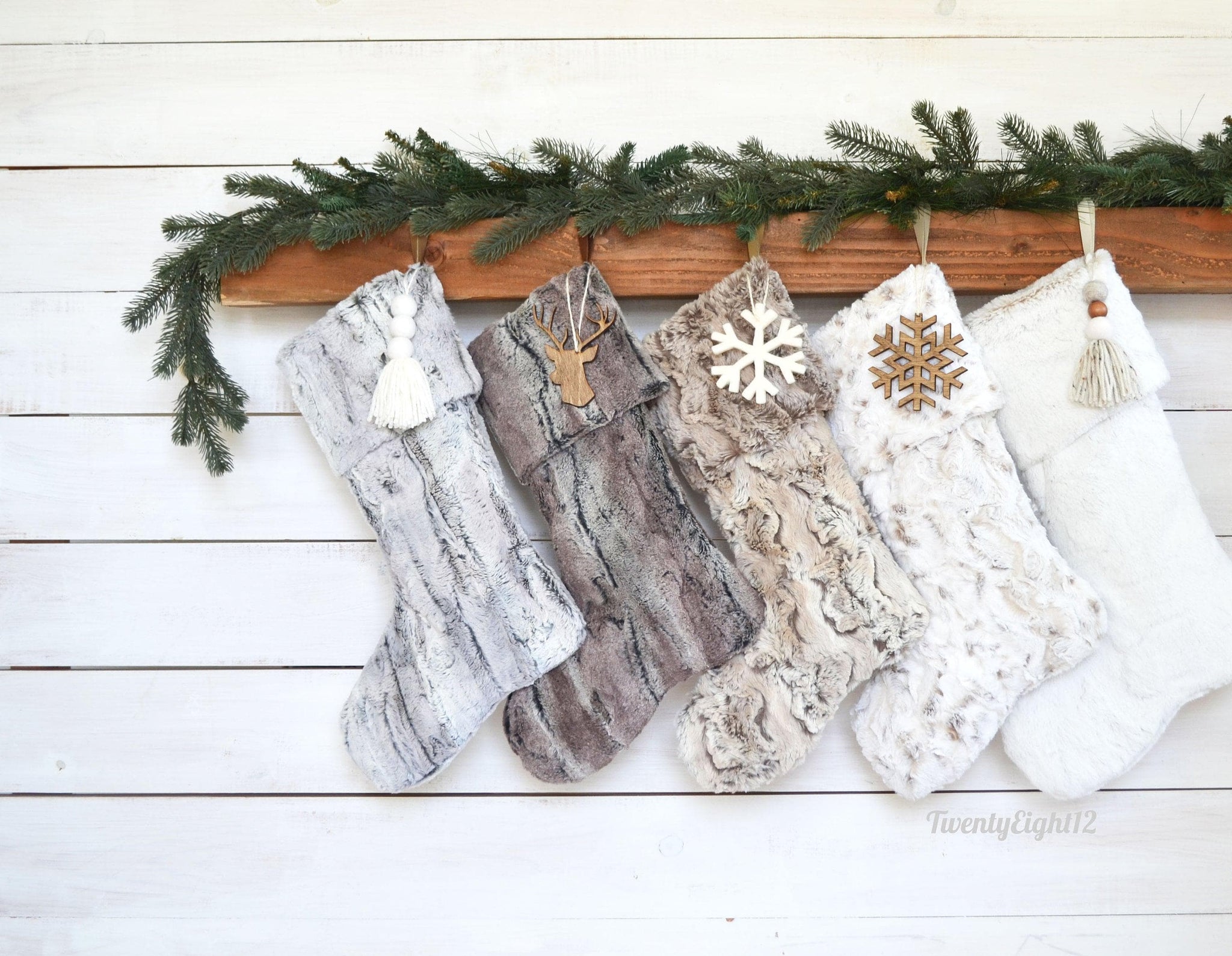 Faux Fur Christmas Stockings- Personalized Fur Christmas Stocking, White Stocking, Personalized Stocking, Rustic Cozy Christmas Stockings