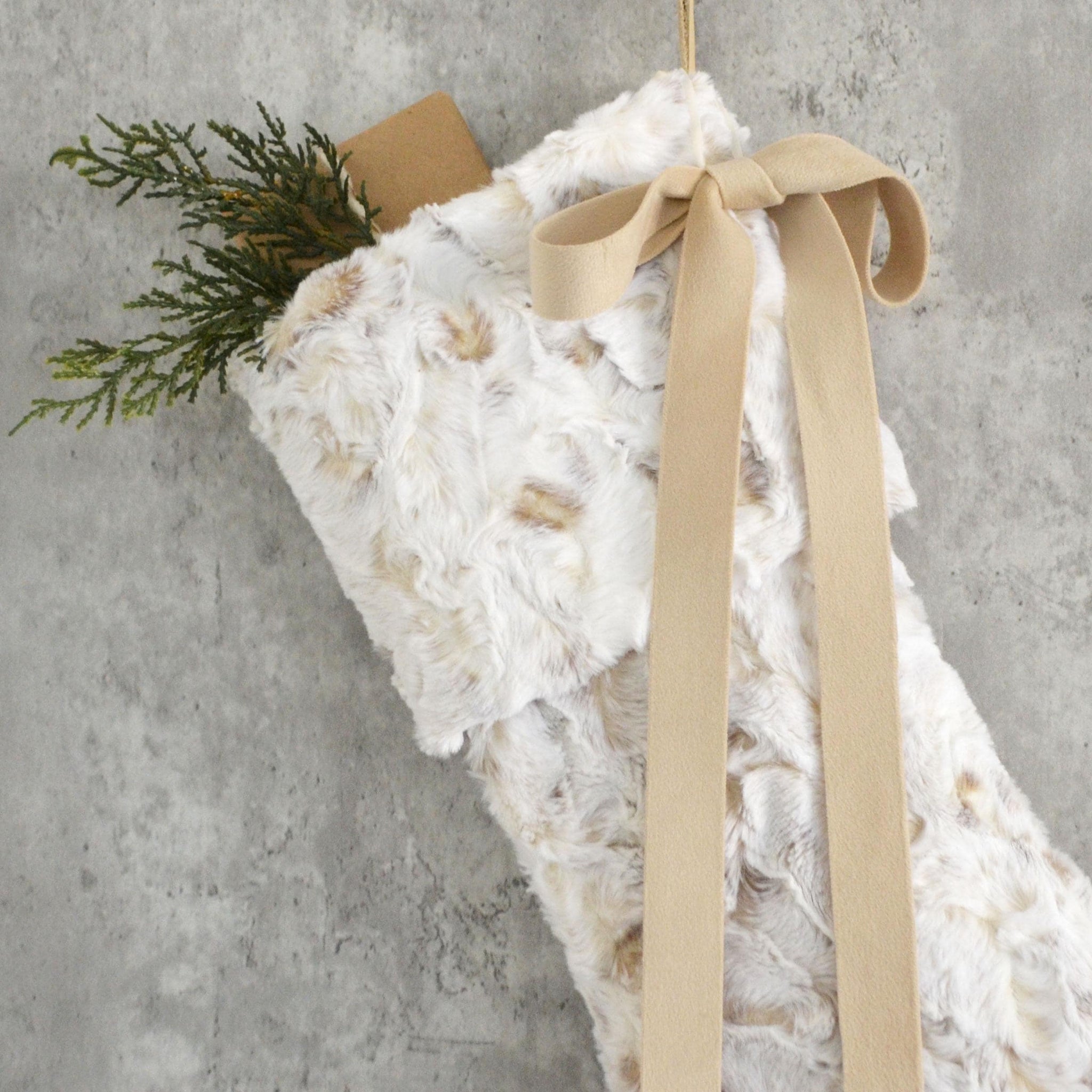 Christmas Stocking- Faux Fur Christmas Stocking, Personalized Christmas Stocking, Neutral Faux Fur Stockings, Dog Stocking, Fur Stockings