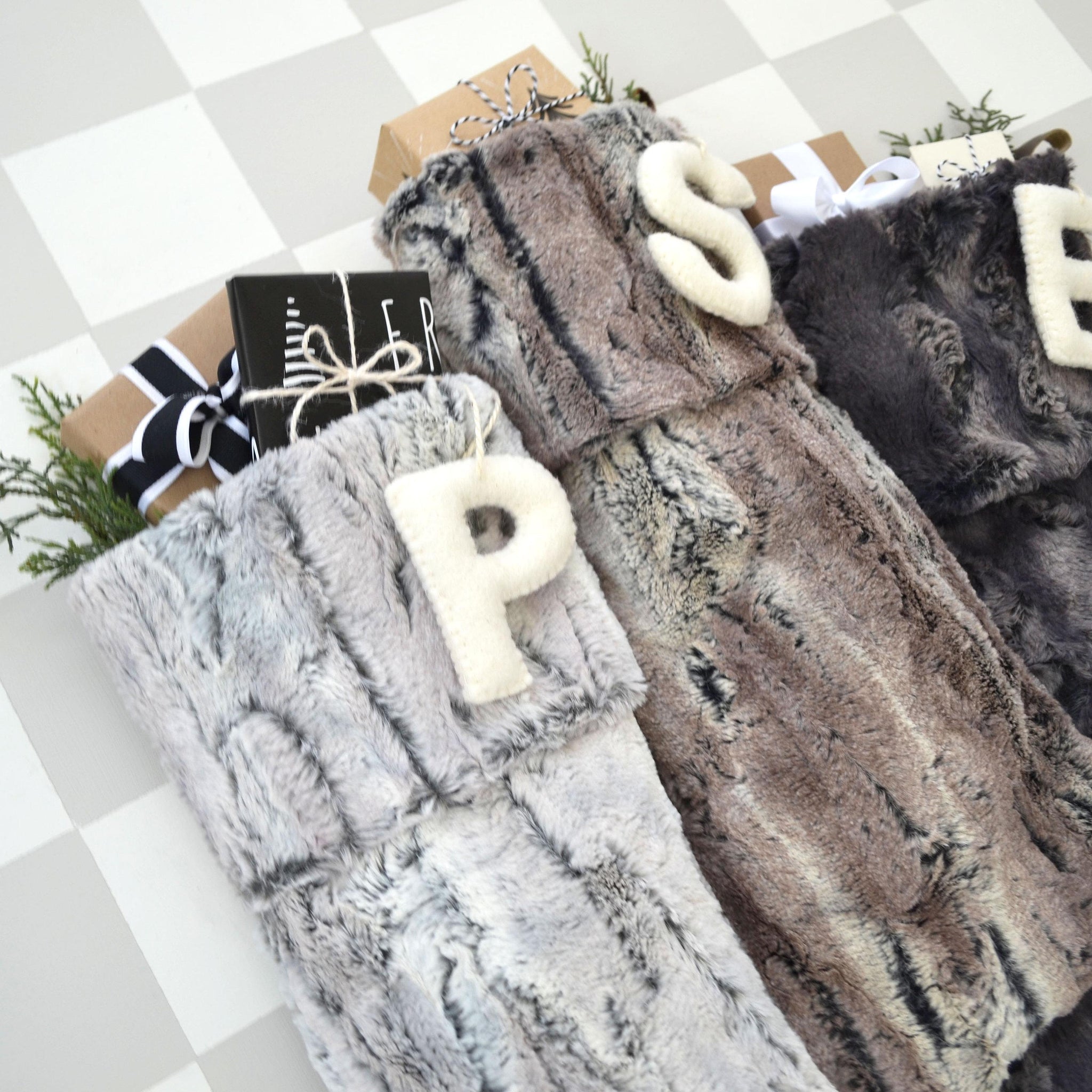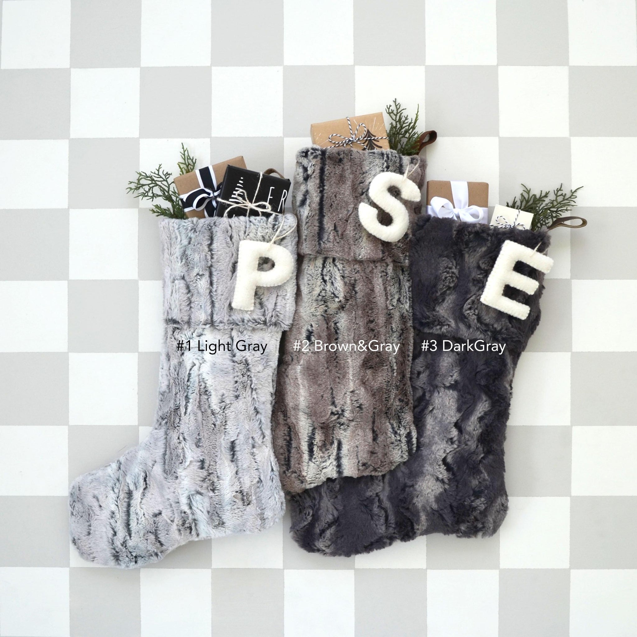 Fur Christmas Stocking - Faux Fur Stockings, Boho Stockings, Fur Stocking, Gray Stocking, Farmhouse Personalized Christmas Stockings