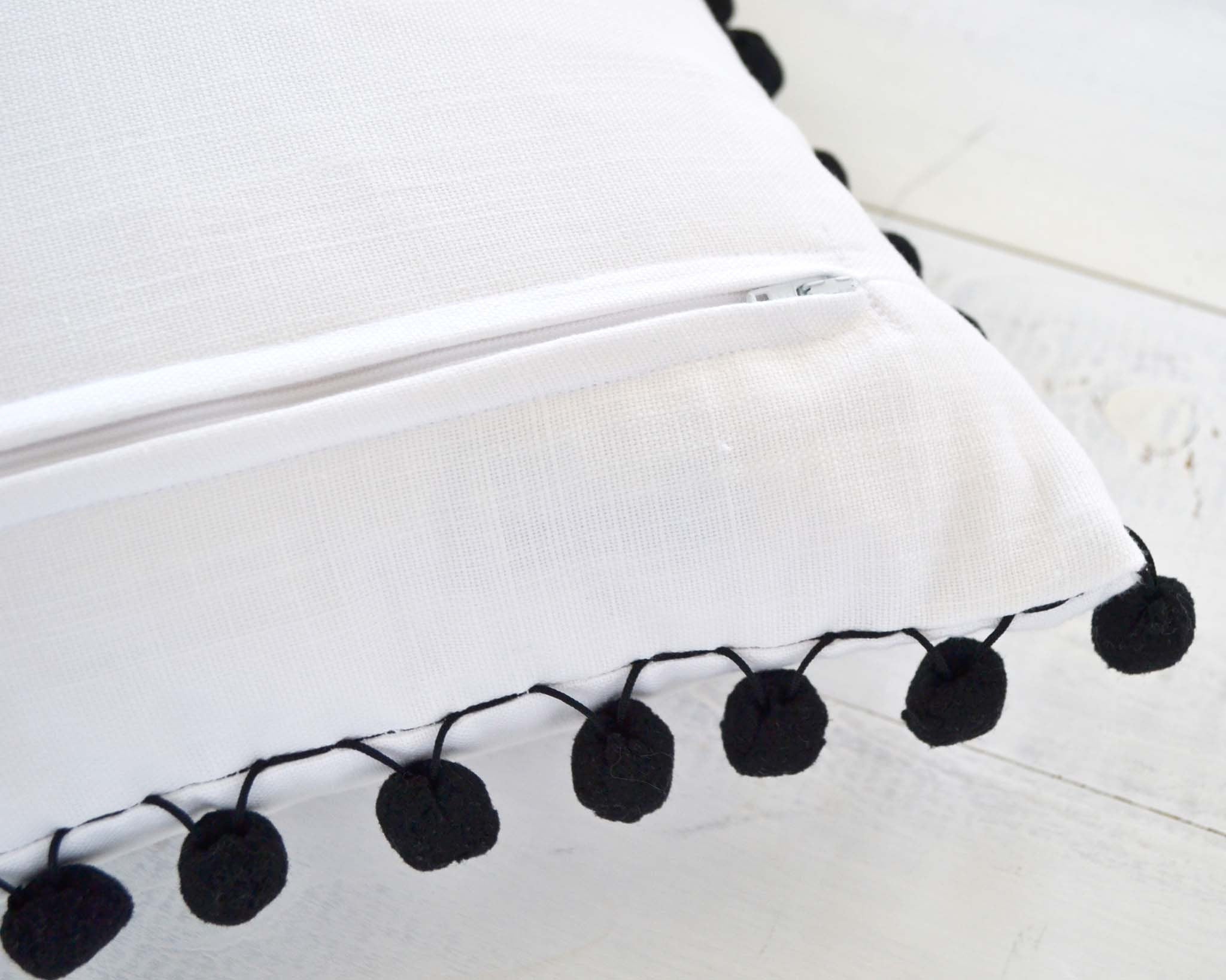 Black Pom Pom Pillow Cover - Large 7/8" Poms, Farmhouse Pillow, Decorative Pillow, Black Pom Pillow Cover, Boho Pillow, Kids Room Decor