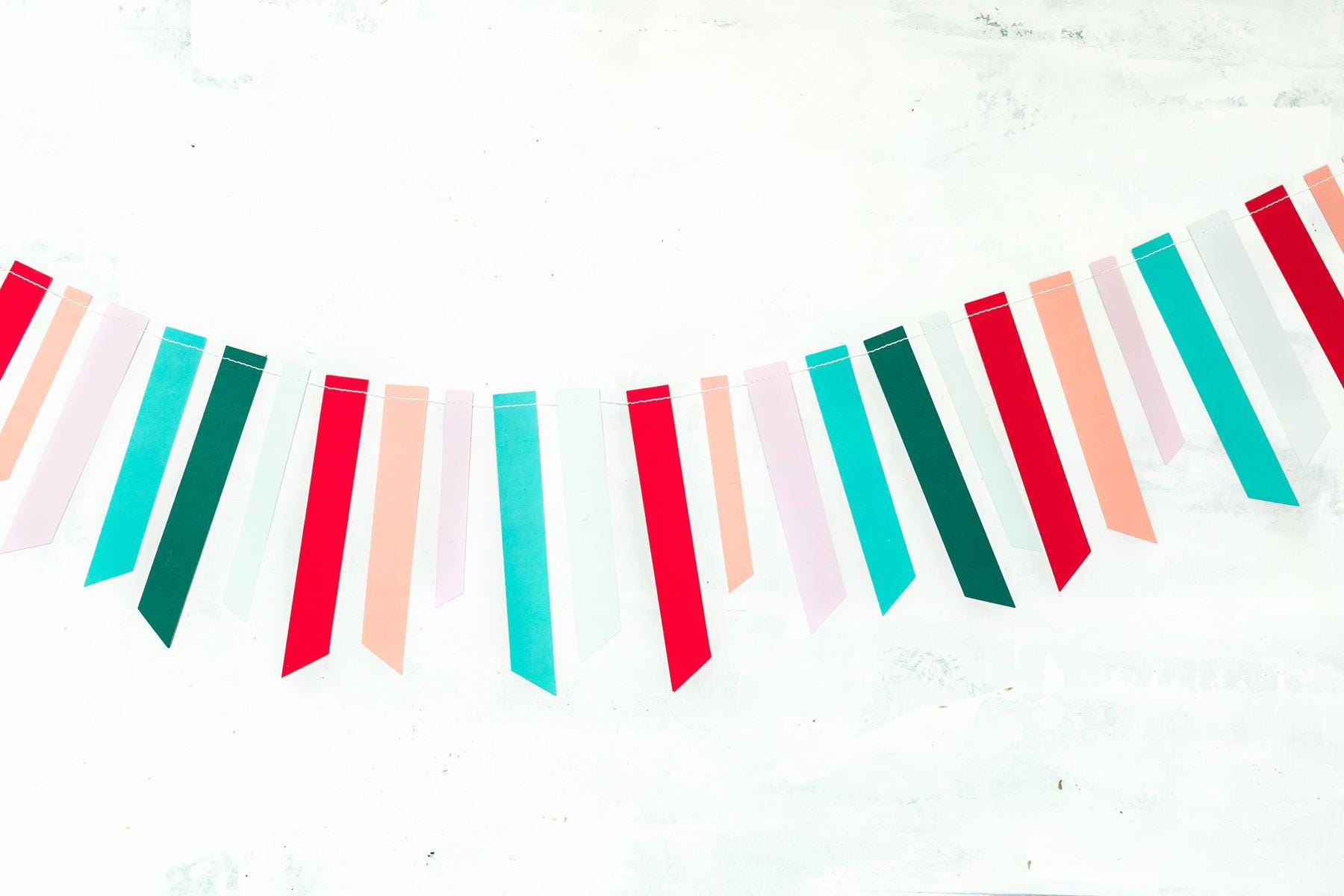 Looking for a colorful and cheery banner to layer with your party decor? This ticker tape paper banner is the perfect touch for any celebration.