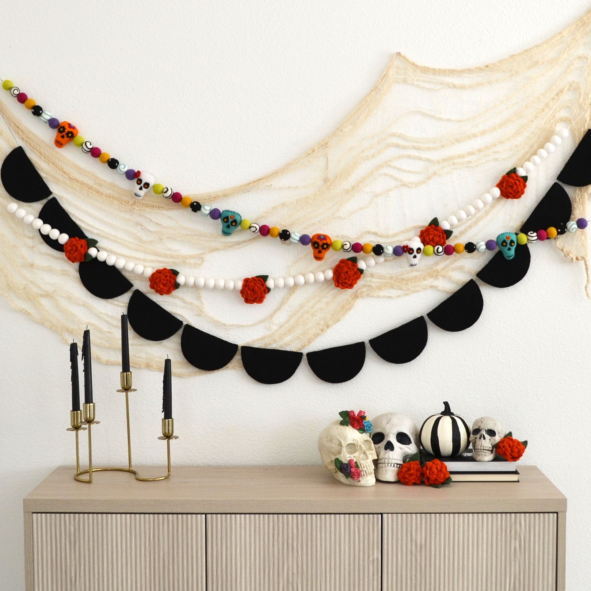 Black Felt Garland | Halloween Felt Ball Garland | Halloween Decor | Scallop Felt Garland | Halloween Garland | Black Garland | Halloween