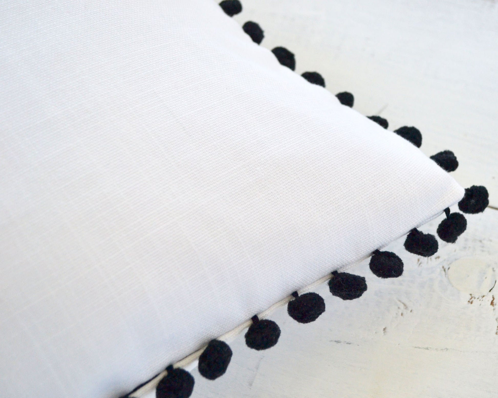 Our white cotton/linen look and pom pom pillow is a perfect addition to your home. Great for everyday use, holiday decor or gifts.