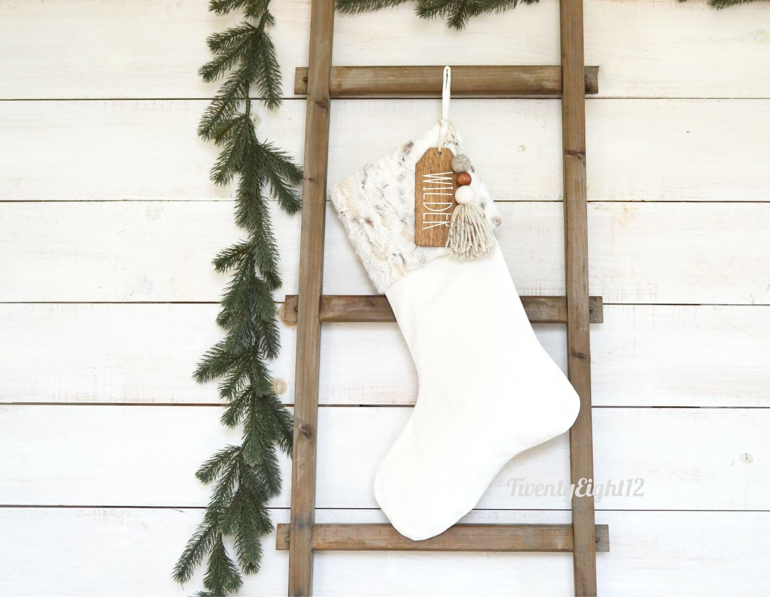 Personalized Christmas Stocking - Neutral Faux Fur and Velvet (Name tag NOT included)
