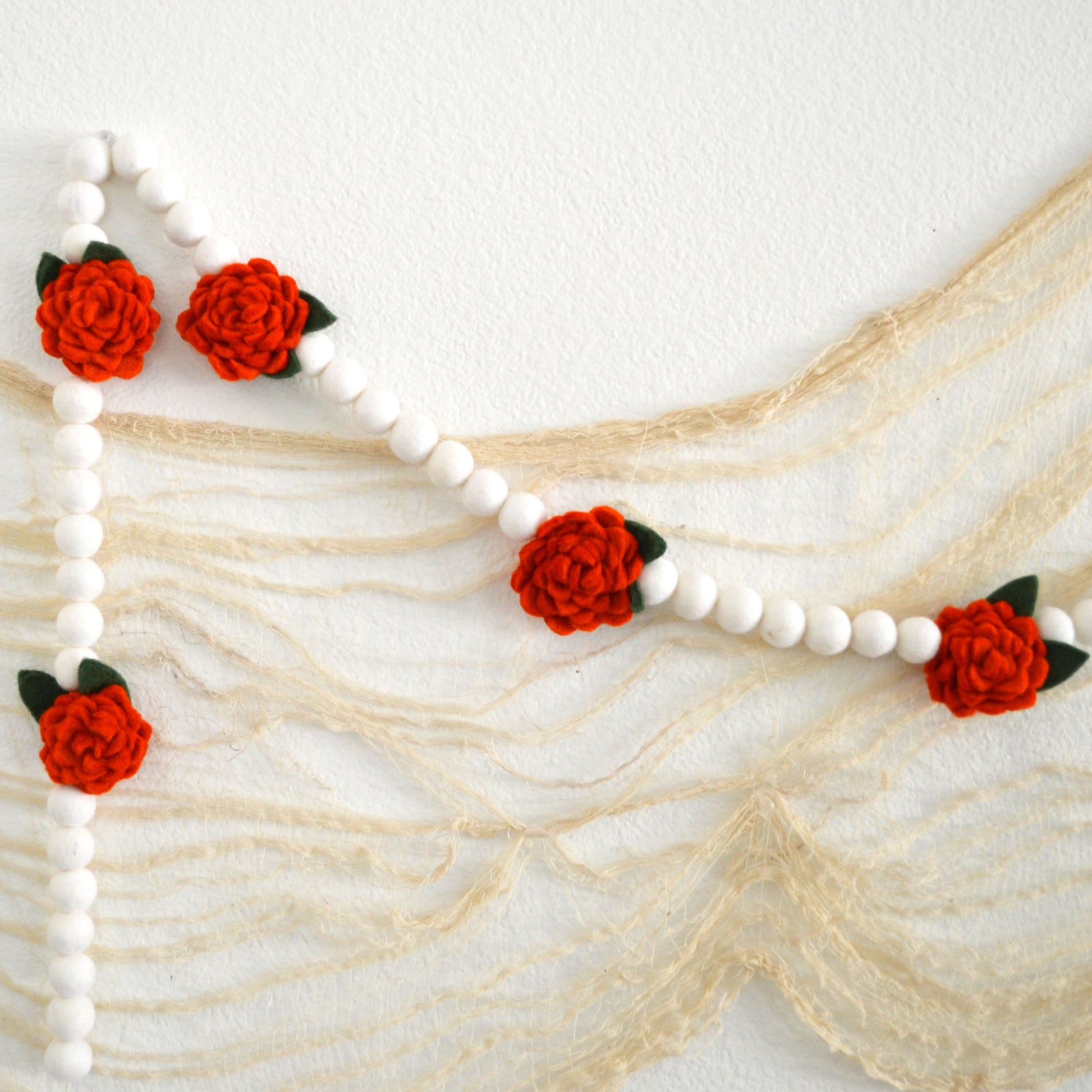 Dia De Los Muertos Felt Garland - Felt Marigold Garland | Day of the Dead Garland | Felt Ball Garland | Dia De Los Muertos Decor | Marigold