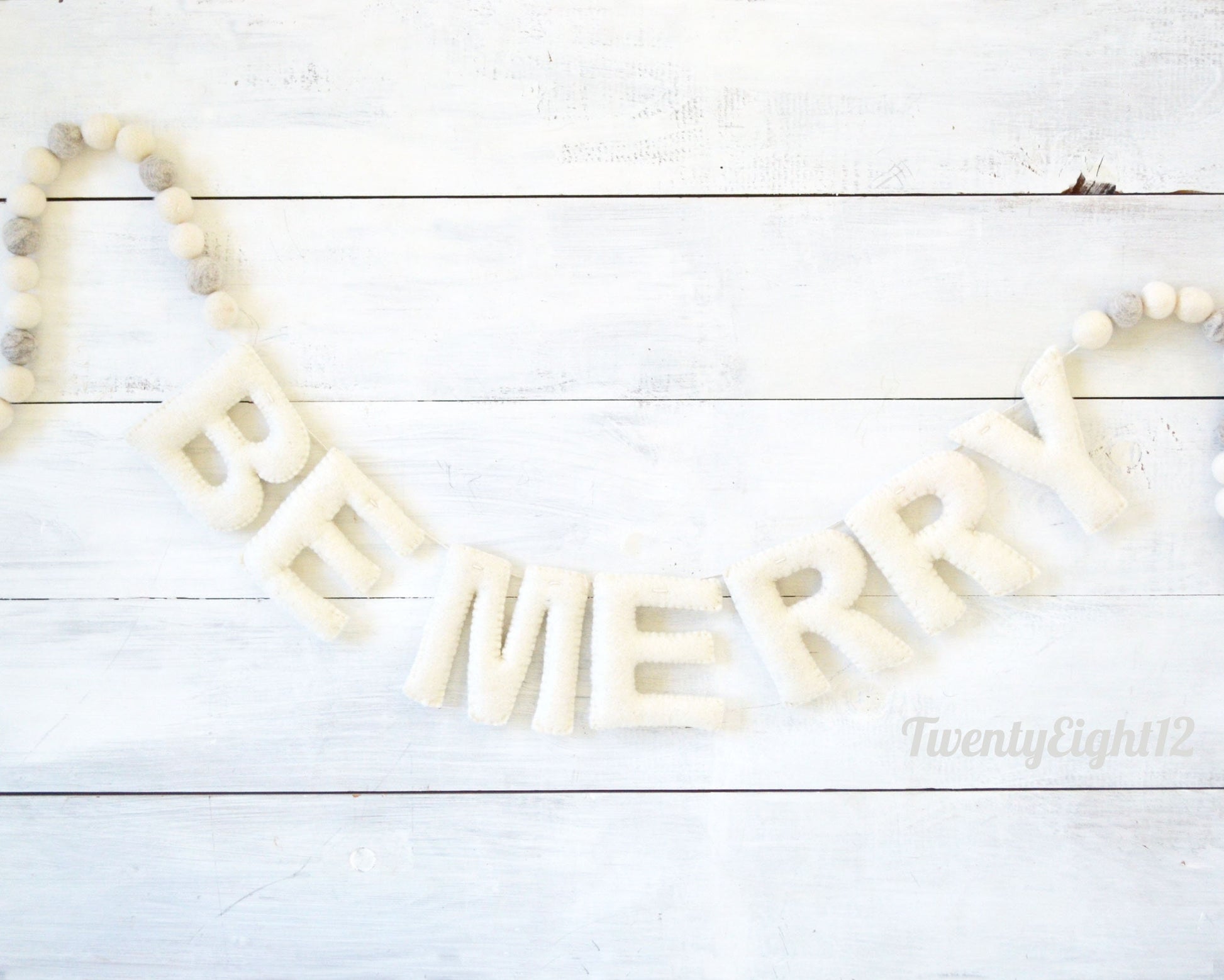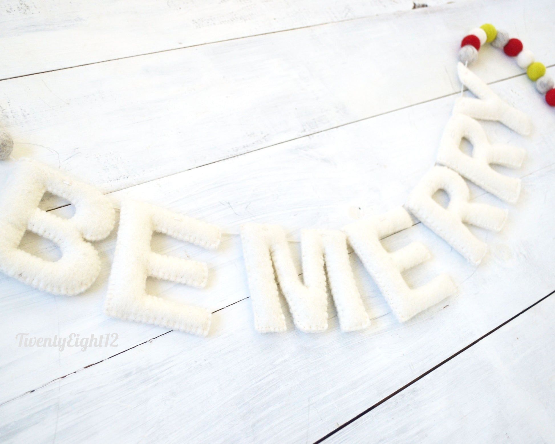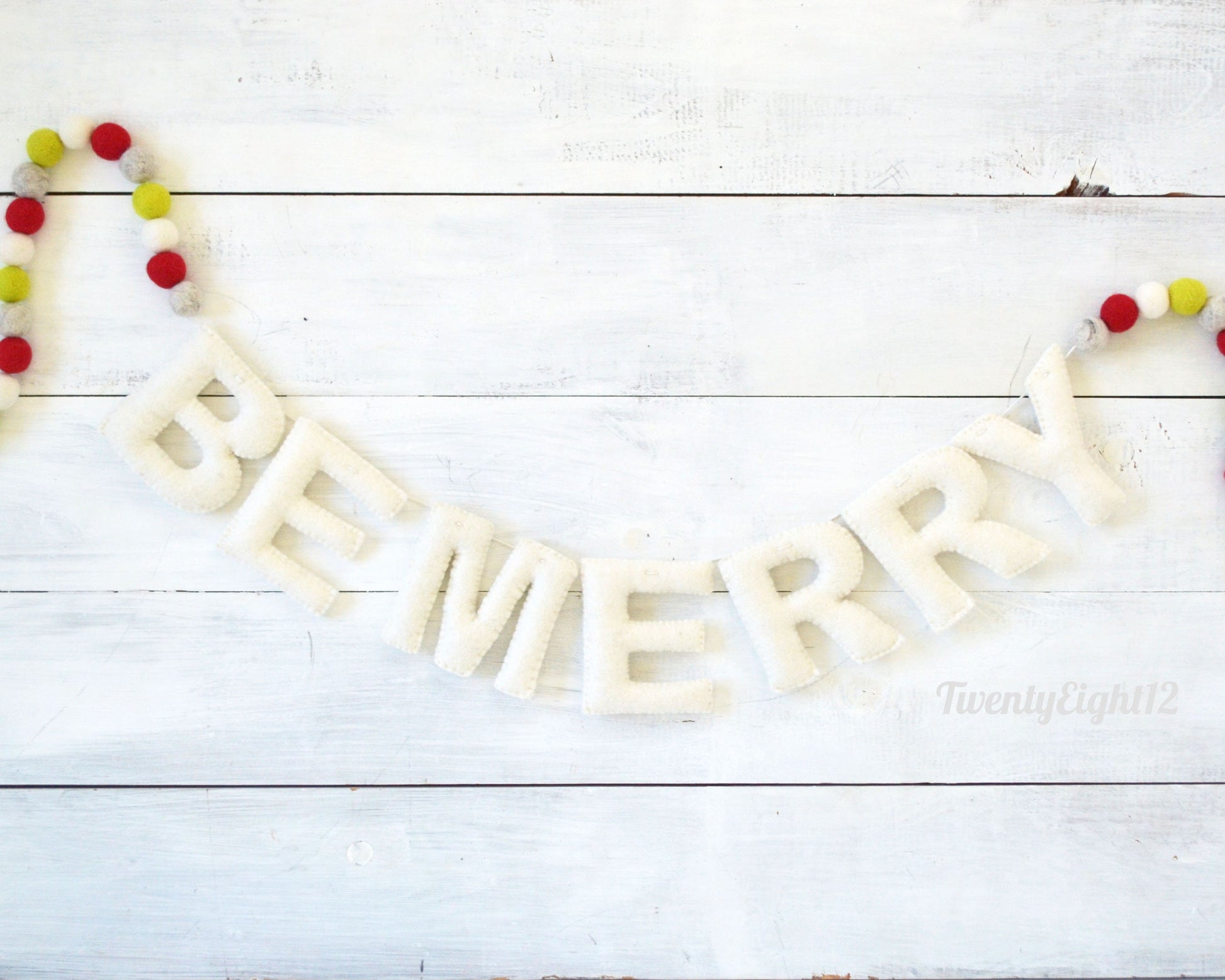 Felt Ball and Letter Garland - Be Merry Banner - Holiday Felt Ball Garland, Christmas Decor, Holiday Banner, Christmas Banner, Felt Balls