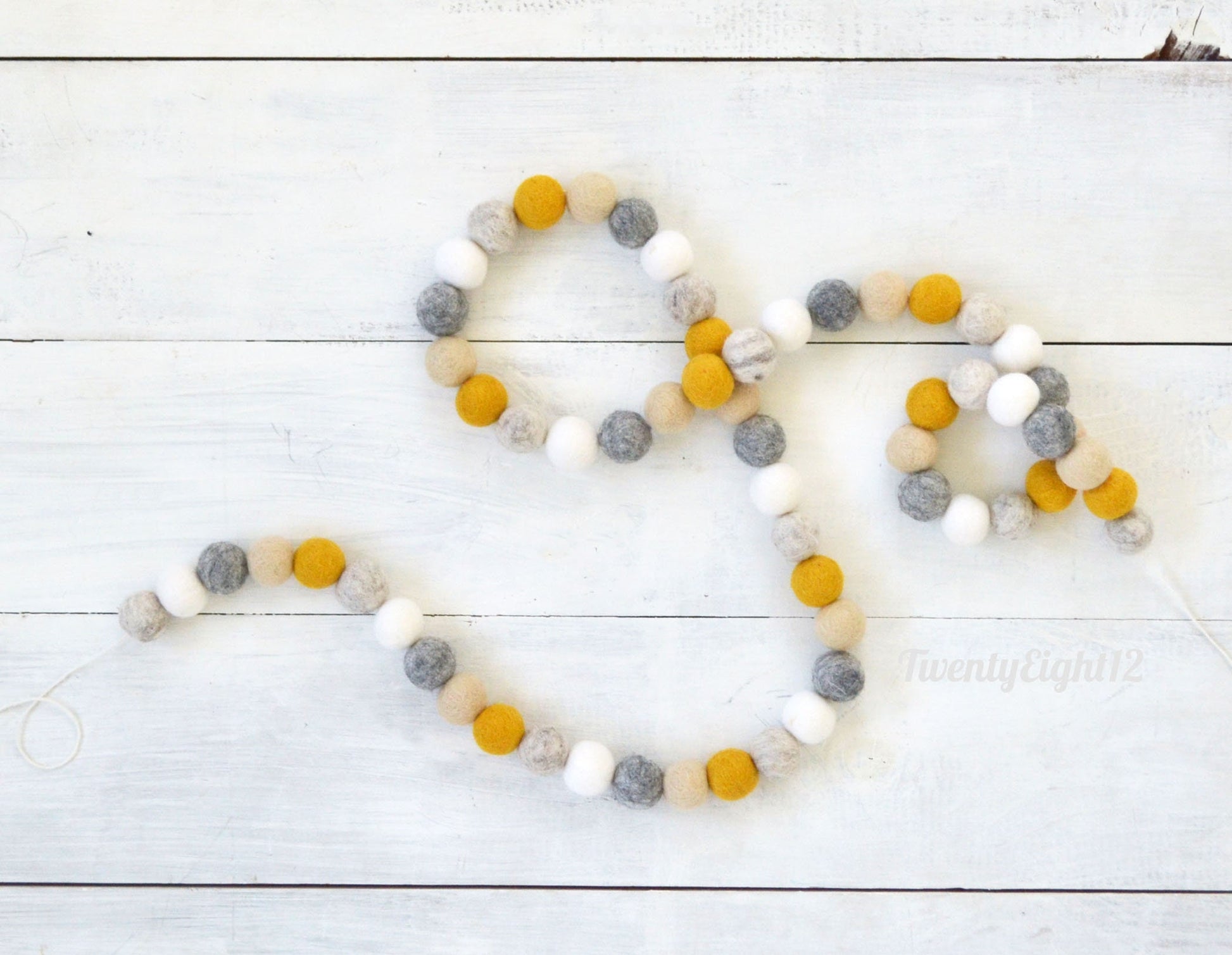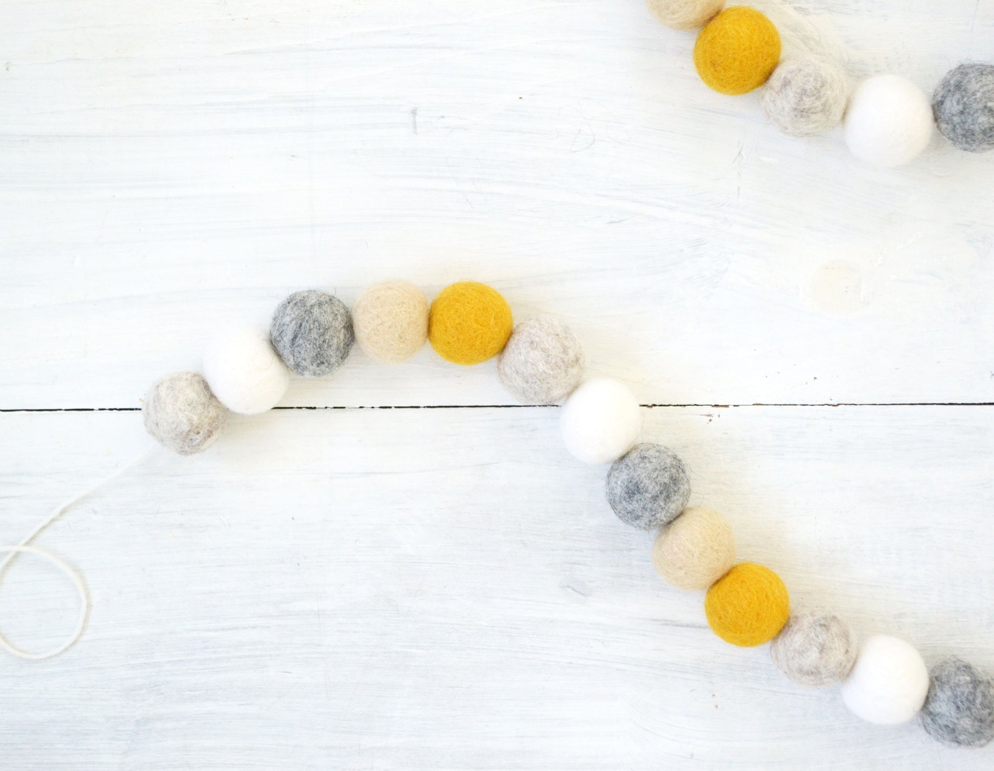 Our wool felt ball garland is the perfect accent for fall home decor, Thanksgiving celebration, children's bedroom, kid's teepee, playhouse, playroom or home decor. Each felt ball measures approximately 1" and is strung on twine. Because we love the fullness and look of all the balls strung side by side, we have designed them this way. Additional twine is left for each ball to be easily moved and spaced to your desired width by sliding left or right. A small loop on each end allows garlands for easy hanging.