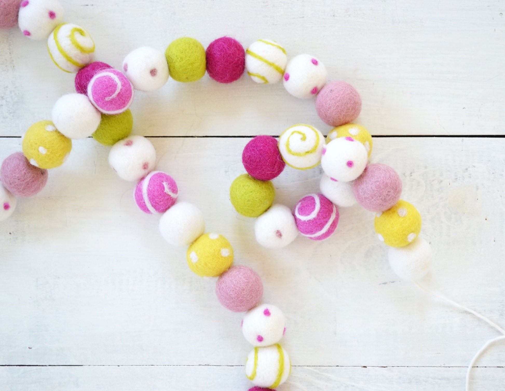Felt Ball Garland, Summer Felt Ball Garland, Playhouse Decor, Girls Room Decor