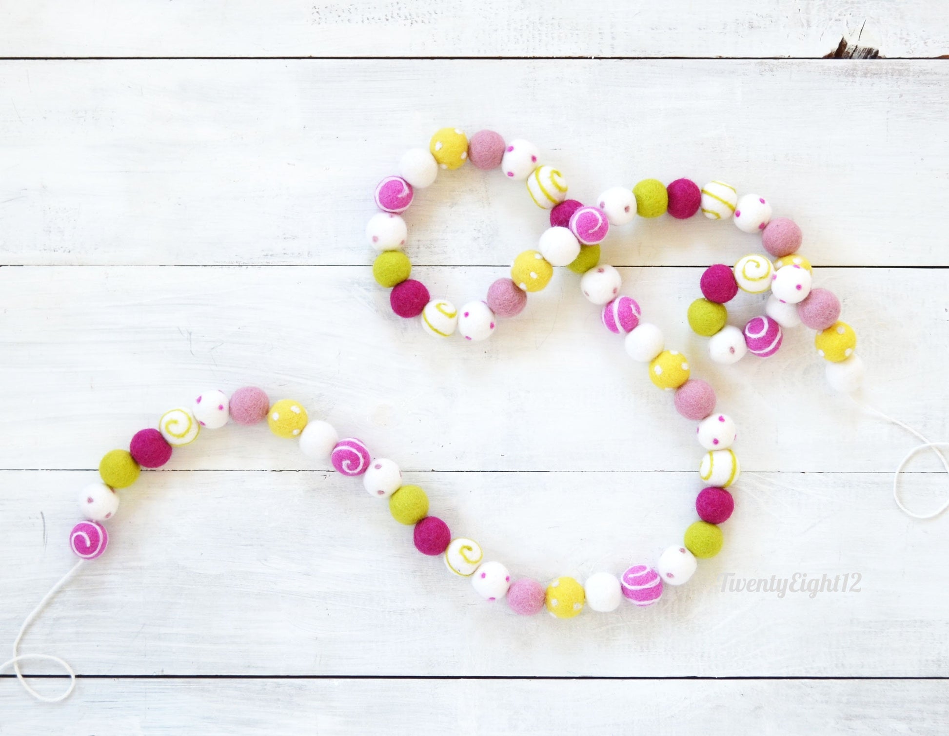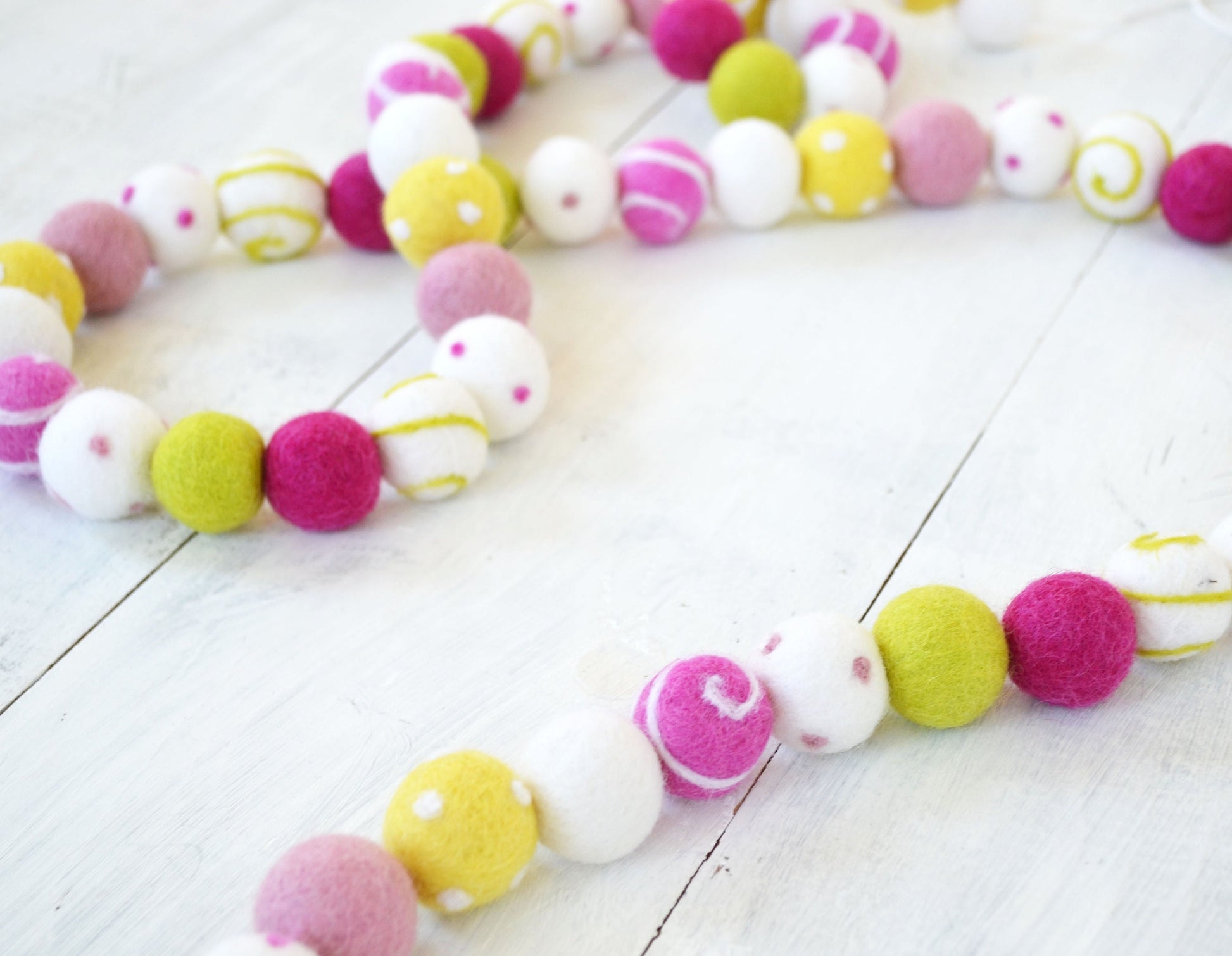 Felt Ball Garland - Summer Fun Pink, Yellow, White & Green