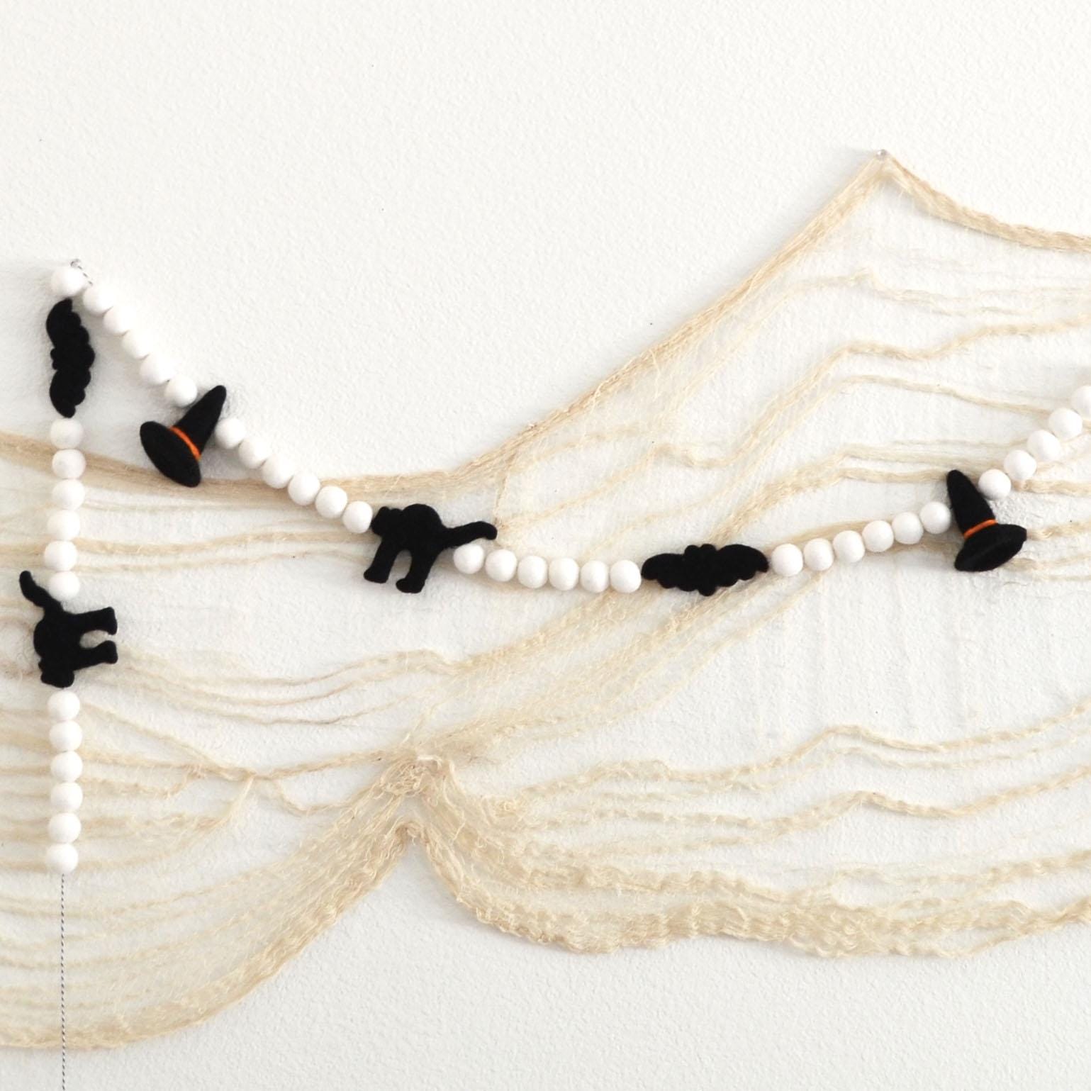 Halloween Felt Ball Garland - Felt Ball Garland, Halloween Garland, Halloween Decor, Felt Garland Halloween, Witch Hat Garland