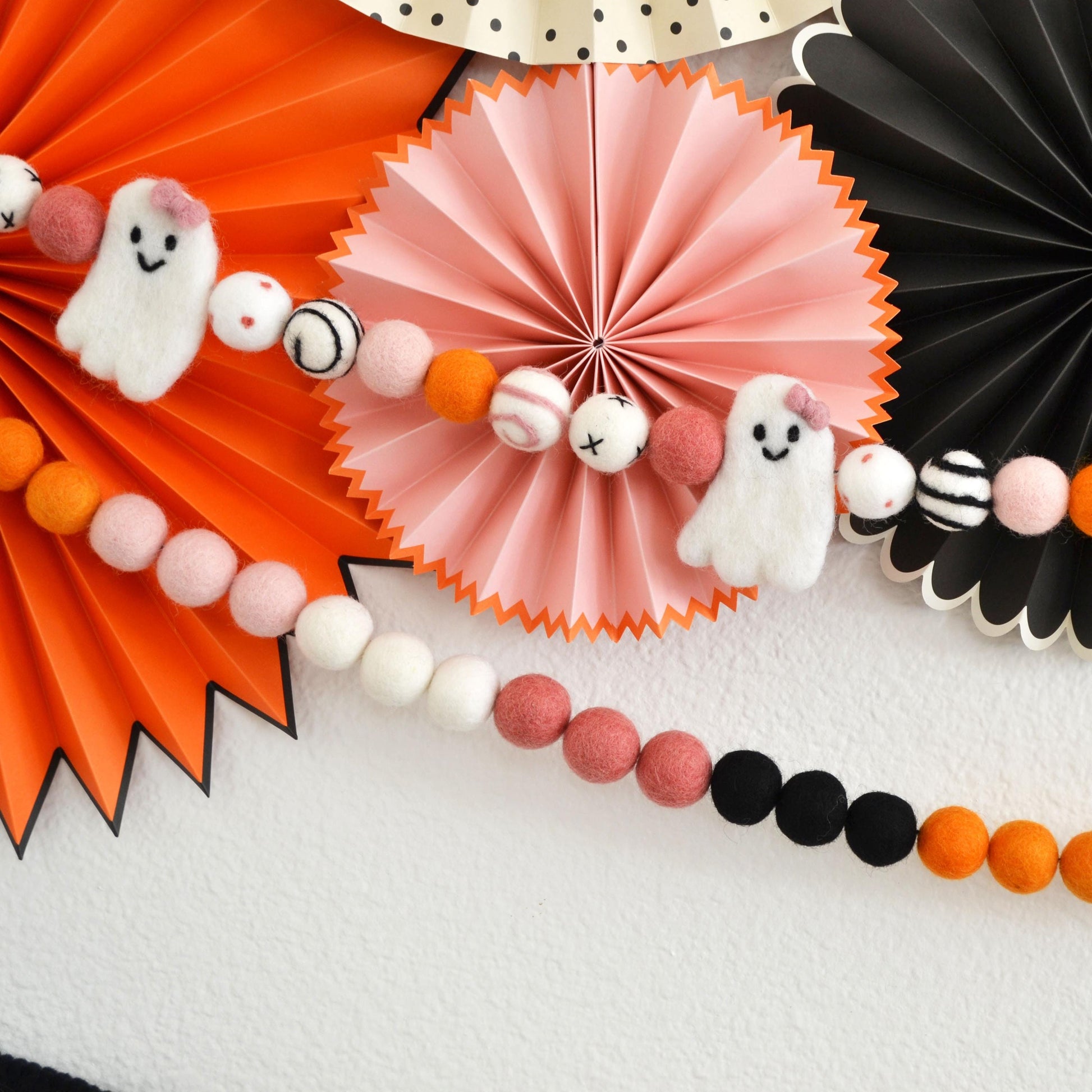 Halloween Garland | Halloween Felt Ball Garland | Ghost with Bow Felt Garland | Halloween Decoration | Halloween Banner | Halloween Decor