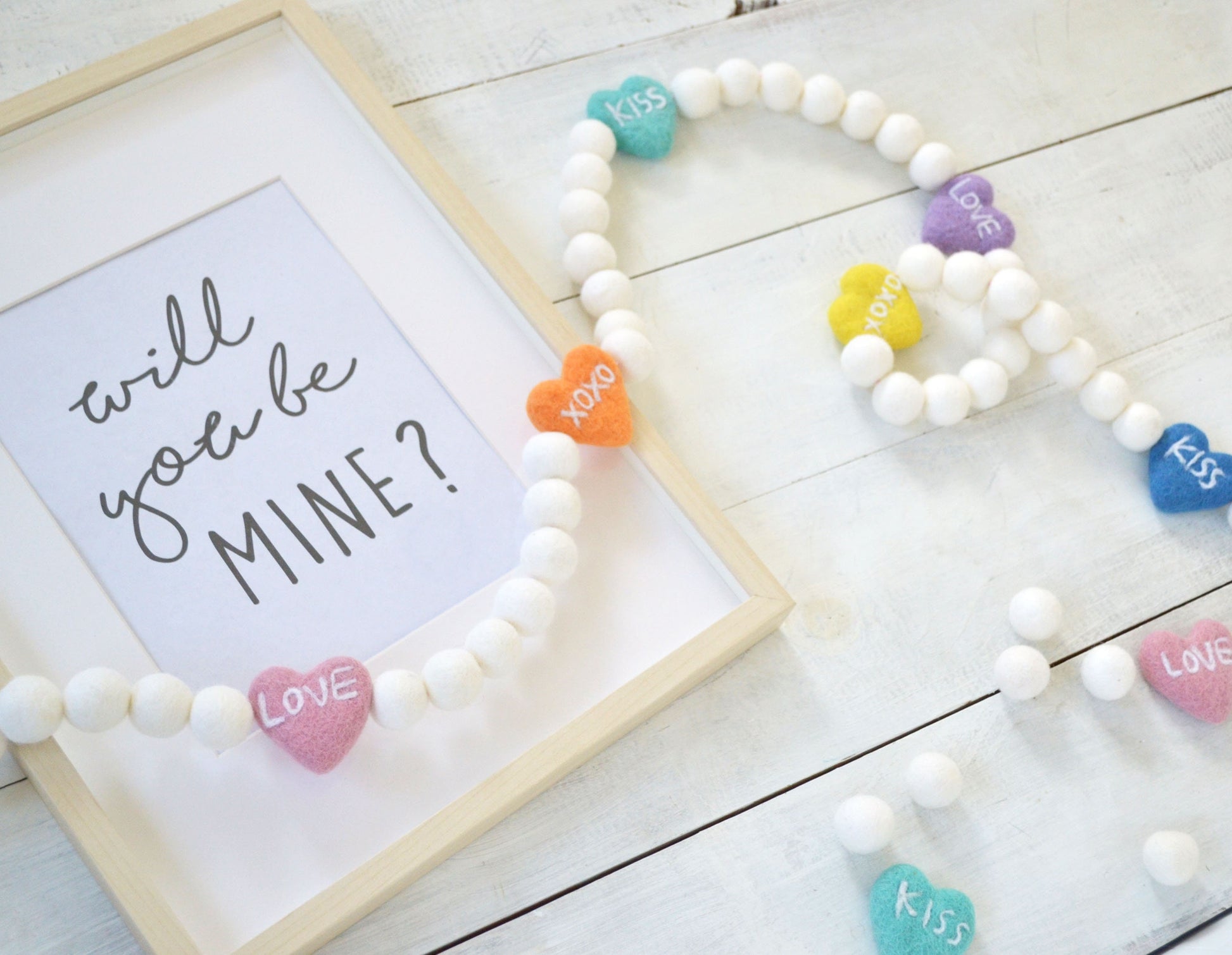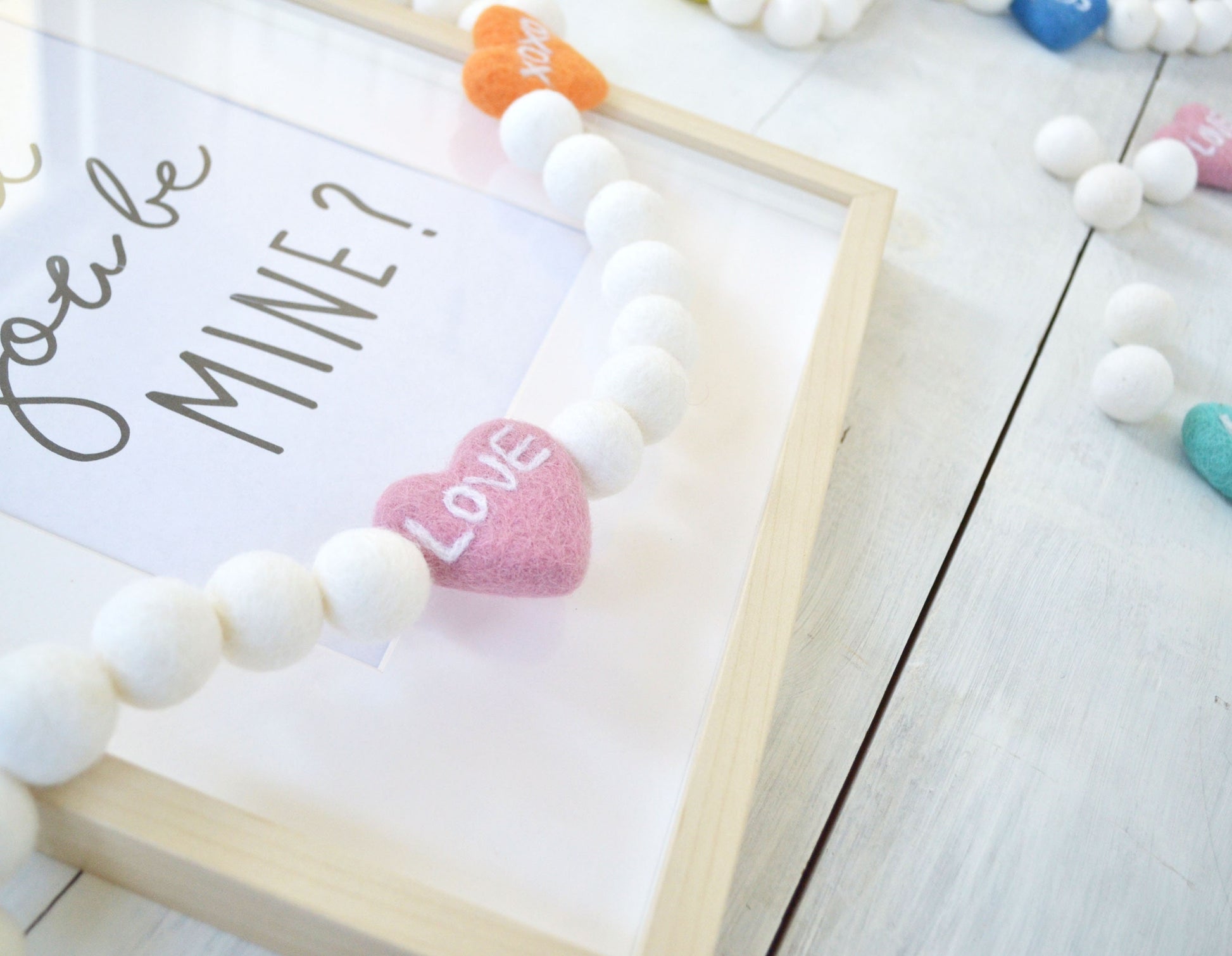 Valentine Felt Garland, Felt Ball Valentines Garland, Conversation Heart Garland, Felt Garland