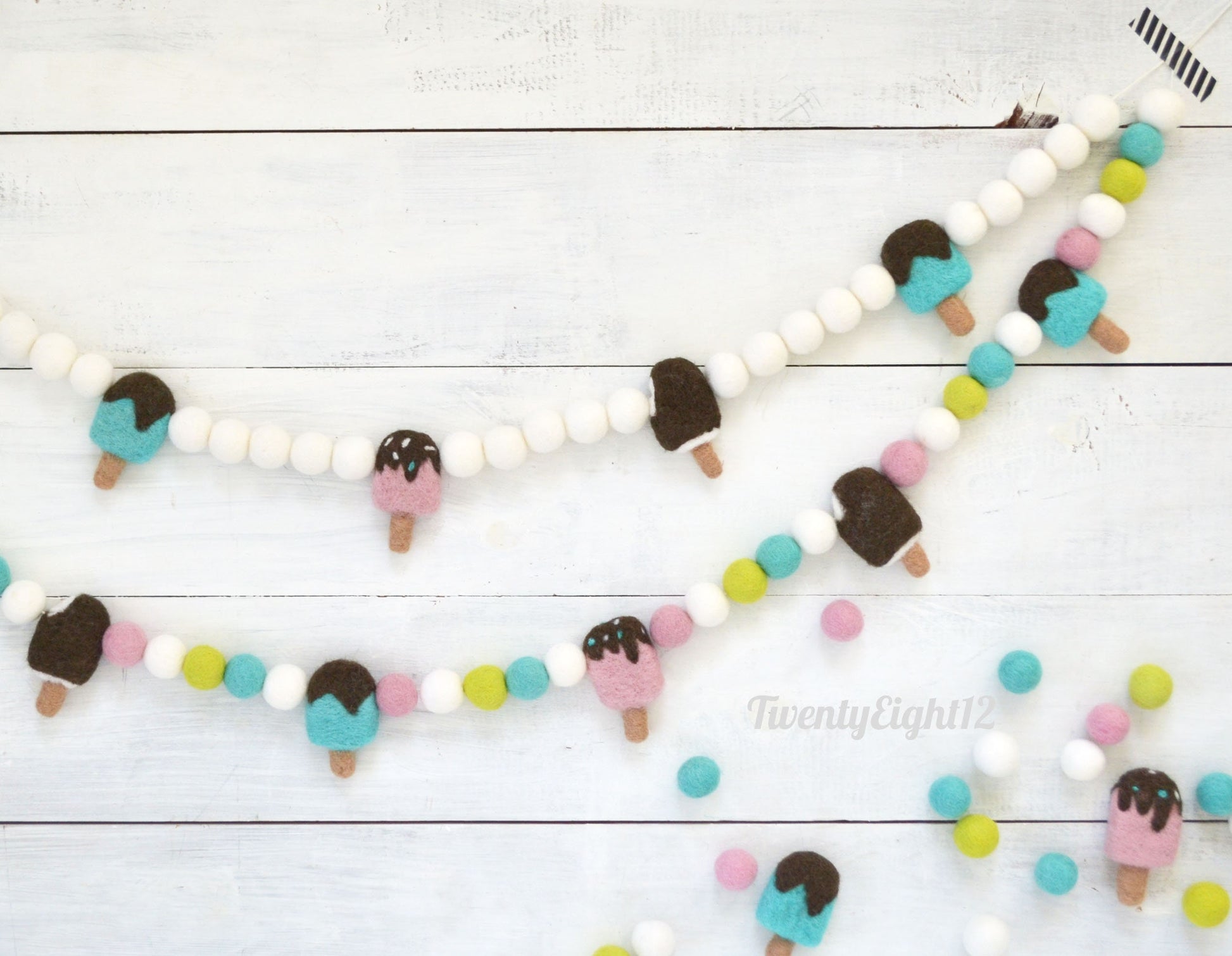 - Ice cream bar garlands measure 7 ft. length: (includes additional twine on each side): 45 balls and 8 ice cream bars measures app. 5 ft.