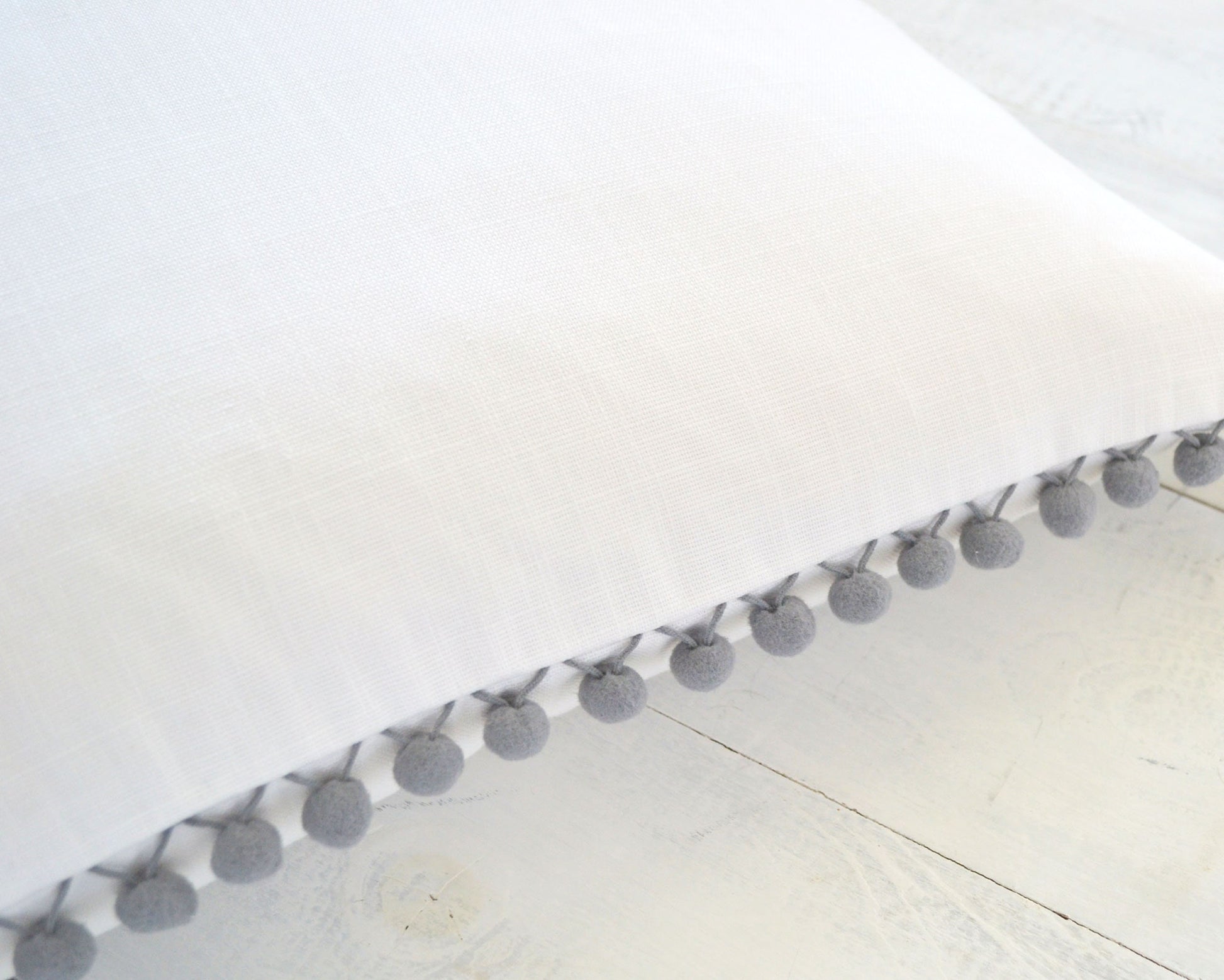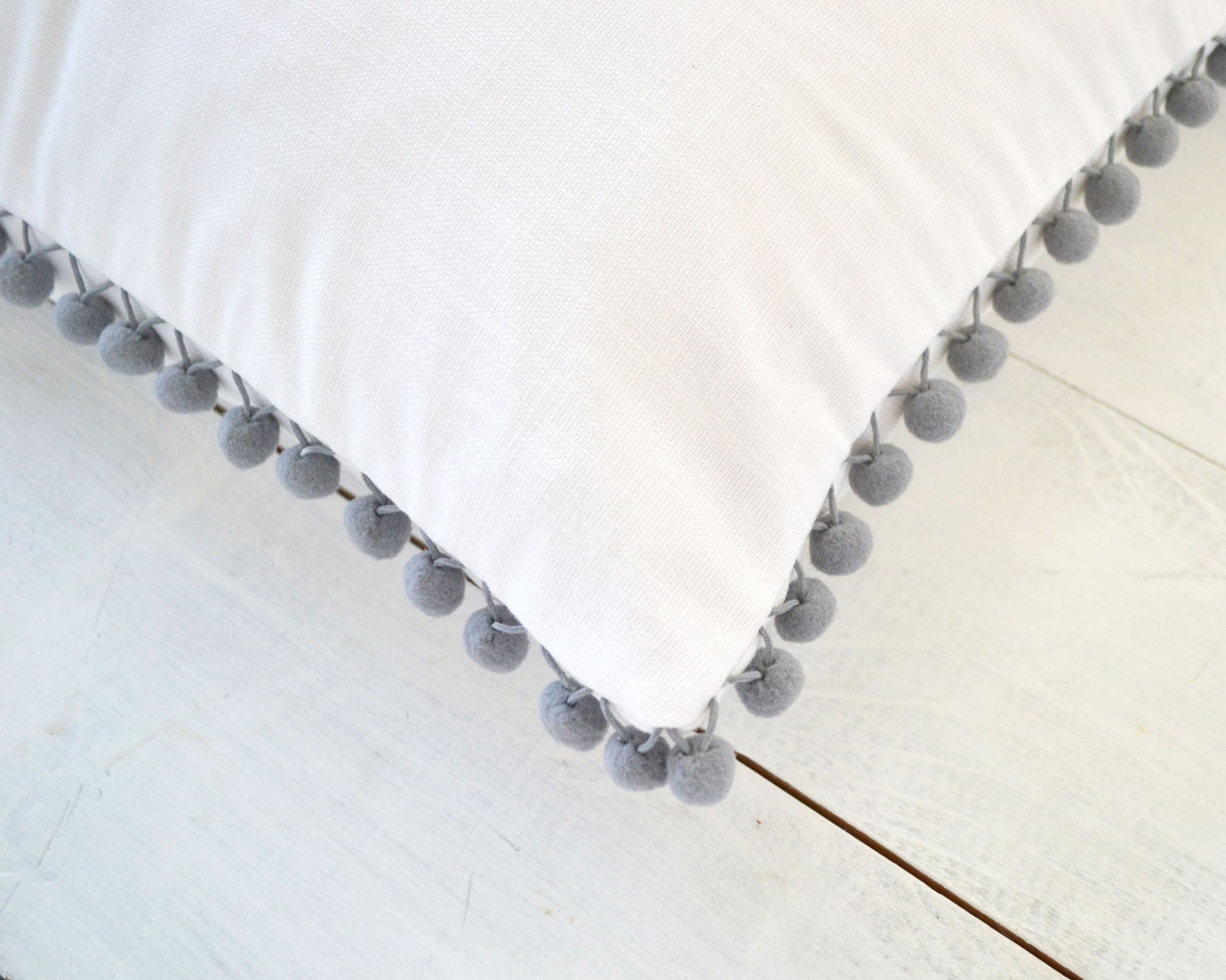 Light Gray Pom Pom Pillow Cover - 12" x 20" - Decorative Pillow, Throw Pillow, Pom Pillow Cover, Gray Pillow, Nursery Decor, Kids Pillows