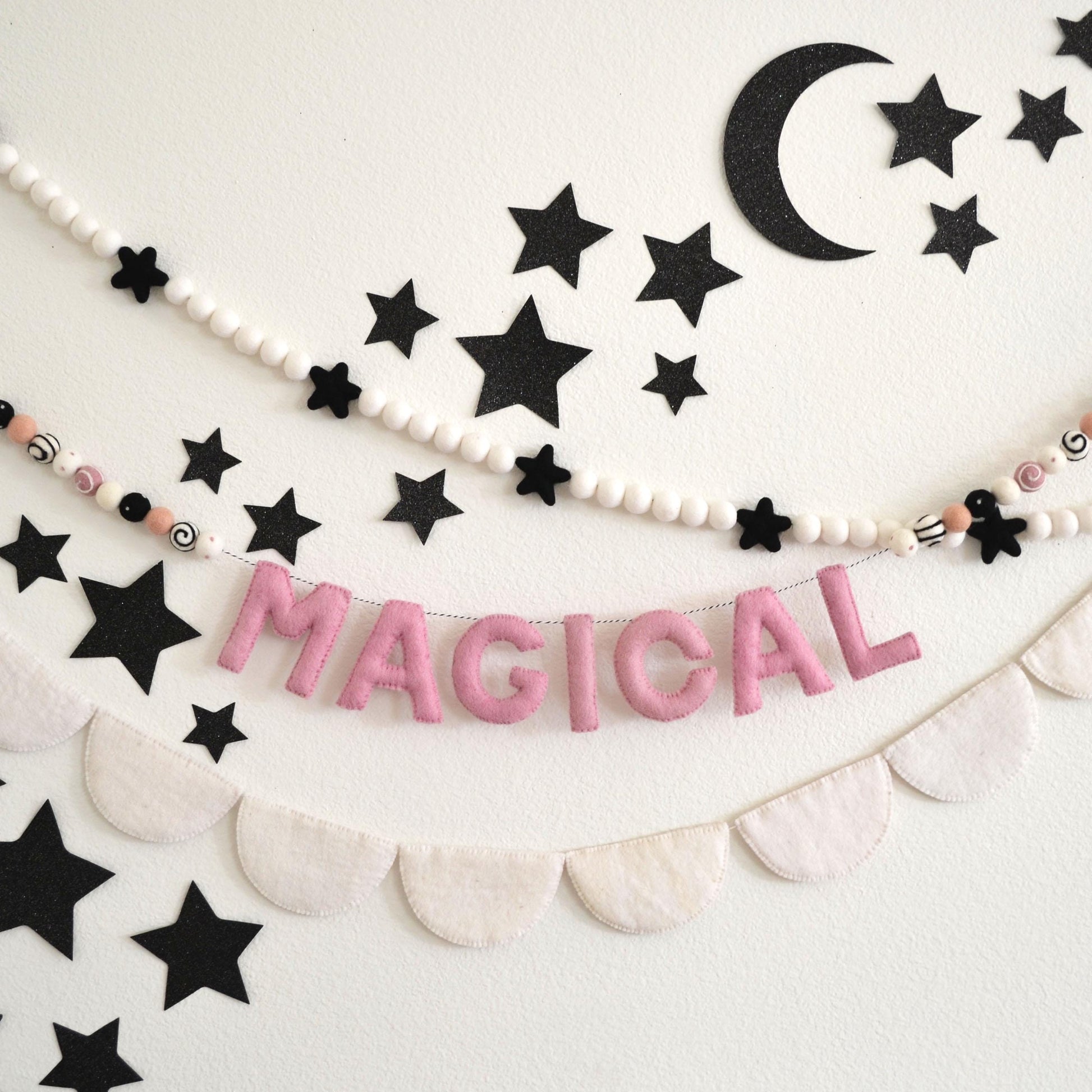 Halloween Felt Ball Garland - Choice of Black Star Felt Garland, MAGICAL Banner or White Felt Scallop Banner