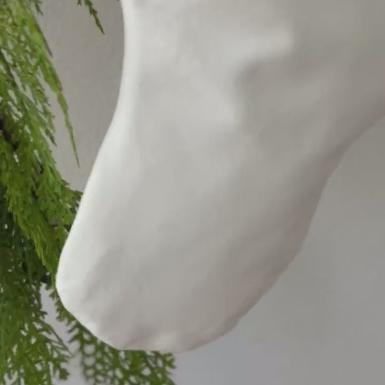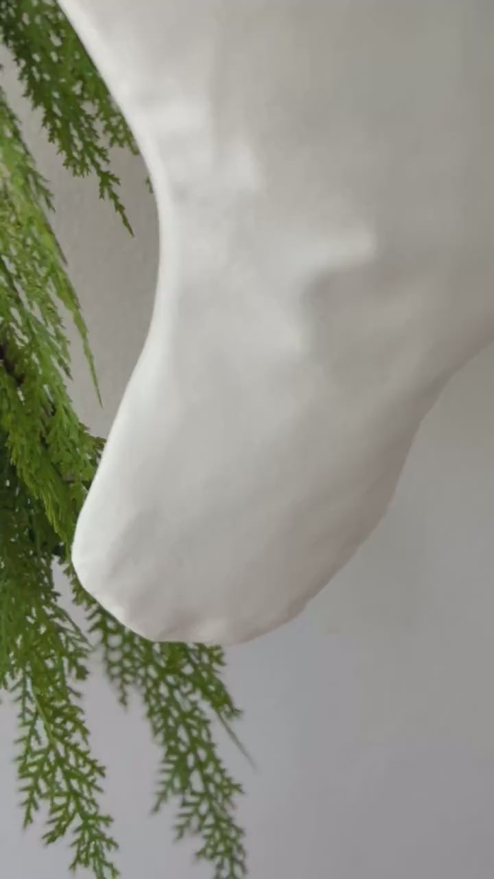 Personalized Christmas Stocking | Light Gray & White Herringbone Velvet Stocking | Family Stockings | Holiday Decor | Velvet Stocking
