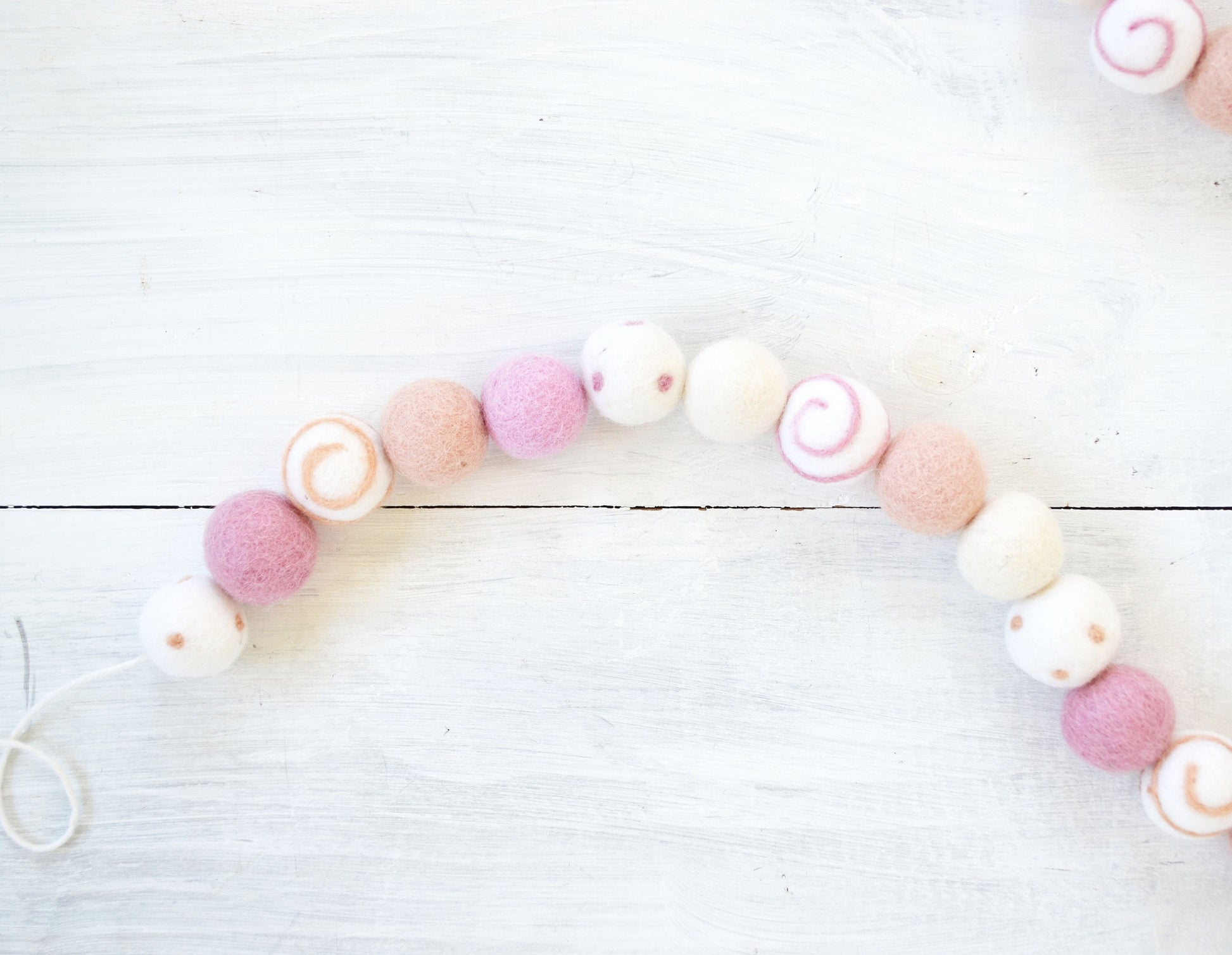 Our wool felt ball garland is the perfect accent for birthday party decor, children's bedroom, kid's teepee, playhouse, playroom or home decor. Each felt ball measures approximately 1" and is strung on twine. Because we love the fullness and look of all the balls strung side by side, we have designed them this way. Additional twine is left for each ball to be easily moved and spaced to your desired width by sliding left or right. A small loop on each end allows for easy hanging.