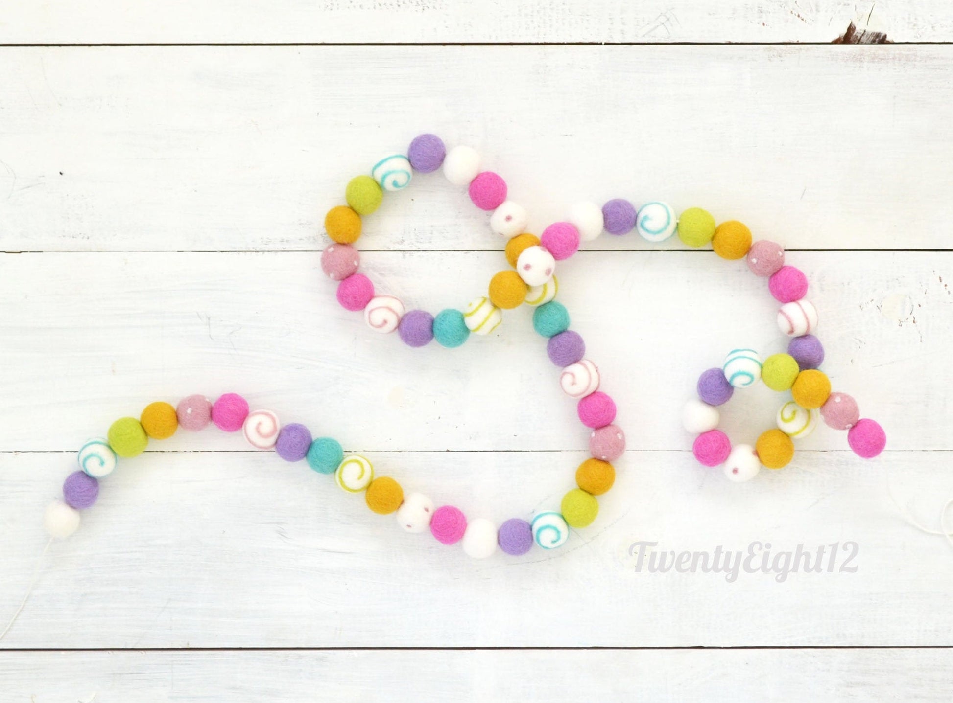 Our wool felt ball garland is the perfect accent for birthday party decor, children's bedroom, kid's teepee, playhouse, playroom or home decor. Each felt ball measures approximately 1" and is strung on twine. Because we love the fullness and look of all the balls strung side by side, we have designed them this way. Additional twine is left for each for easy hanging.