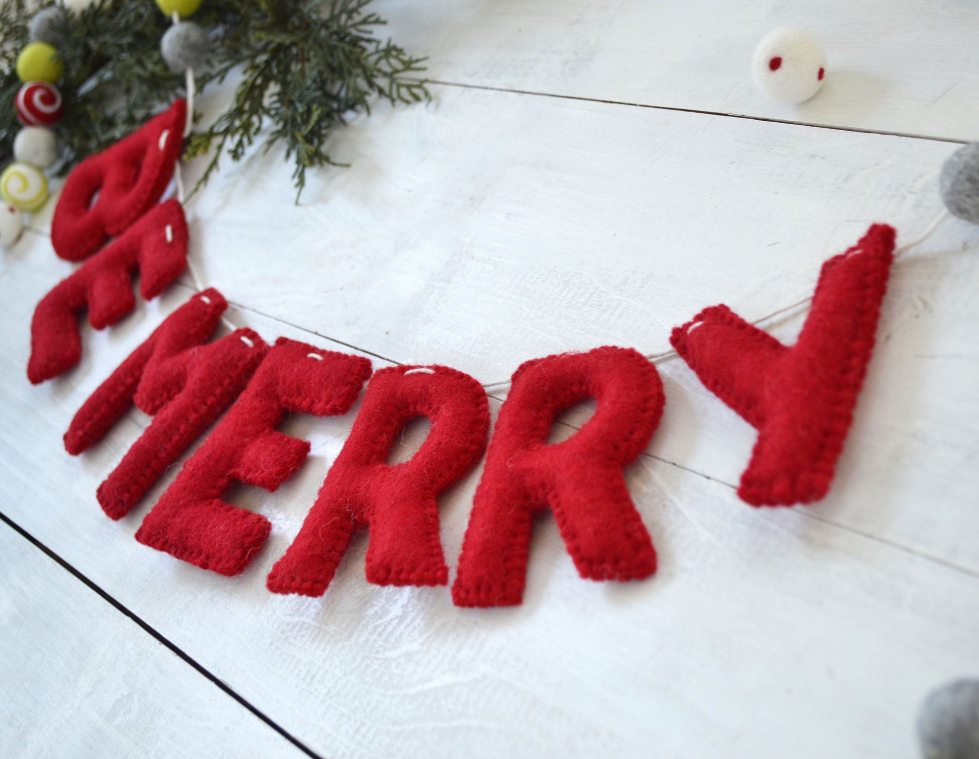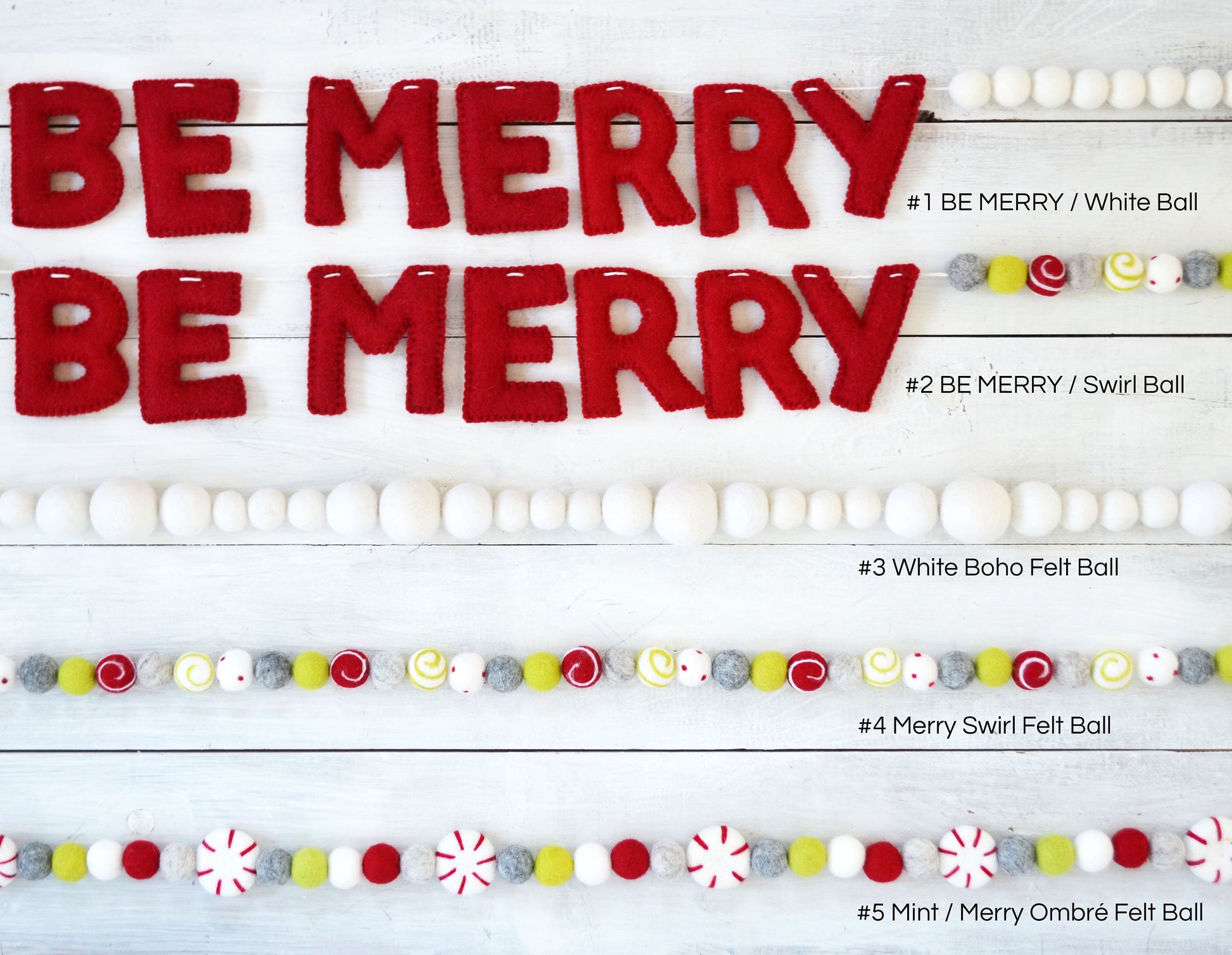 Our wool felt ball & red felt letter garland is the perfect accent for your mantel, children's room, Christmas tree, holiday decor and home decor. Each felt ball measures approximately 1" and is strung on coordinating bakers twine. Because we love the fullness and look of all the balls strung side by side, we have designed them this way with wool felt letters in-between.