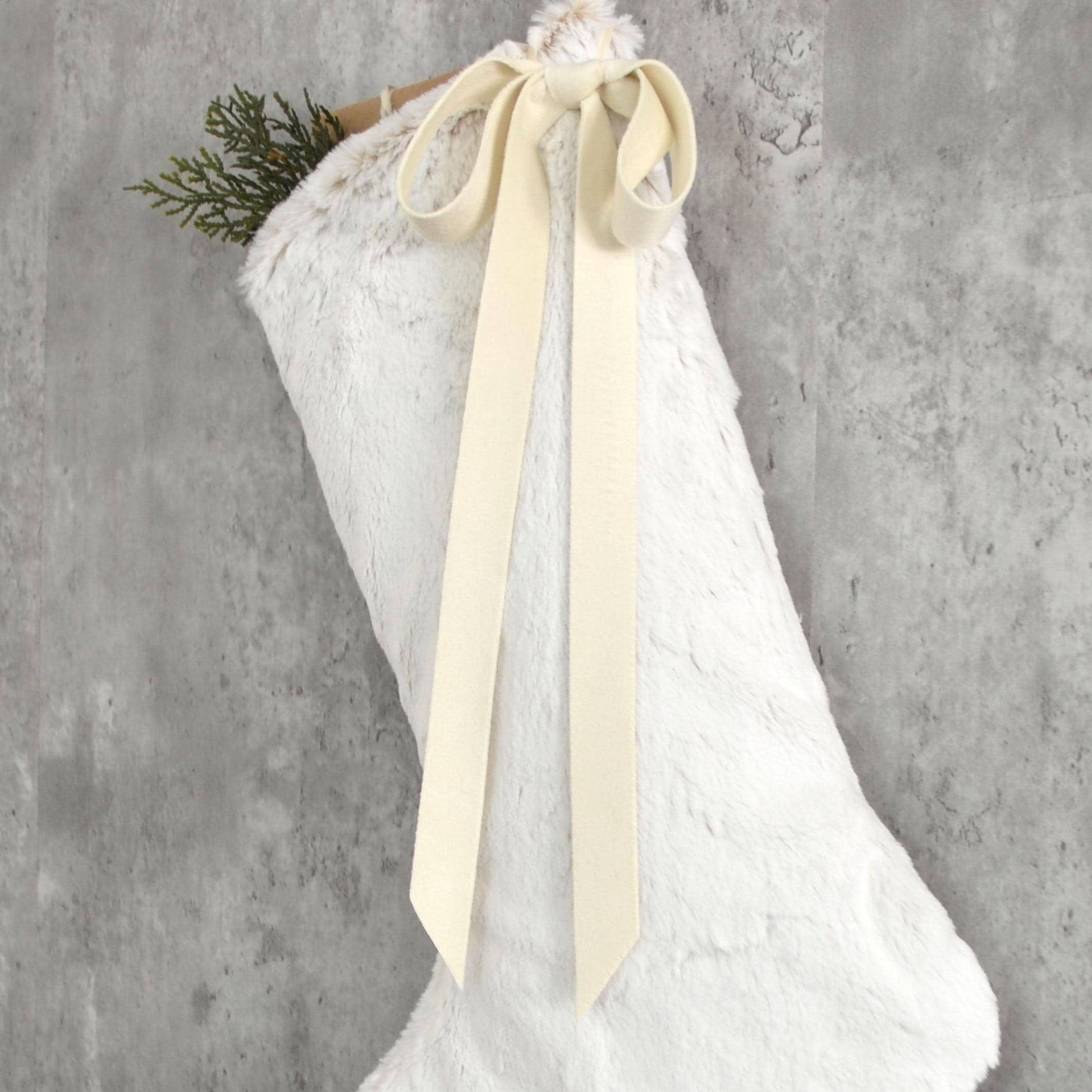 Snow White Faux Fur Christmas Stocking with Bow